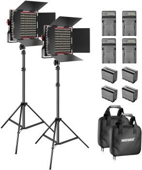 Neewer 2-Pack 660 LED Video Luz Regulable Bi-Color con Parasol y 1,83cm Soporte de Luz,4-Pack 6600mAh Battería Li-Ion Recargable y Cargador para Fotografía Estudio Youtube Video(Rojo)