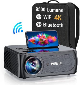 Proyector 5G WiFi Bluetooth, 9500 Lúmenes Full HD 1080P WiMiUS Proyector 4K Soporte WiFi Bluetooth Corrección Trapecio 4P/4D Zoom Proyector WiFi Cine En Casa 350» para iOS, Android, PS5 HDMI AV USB